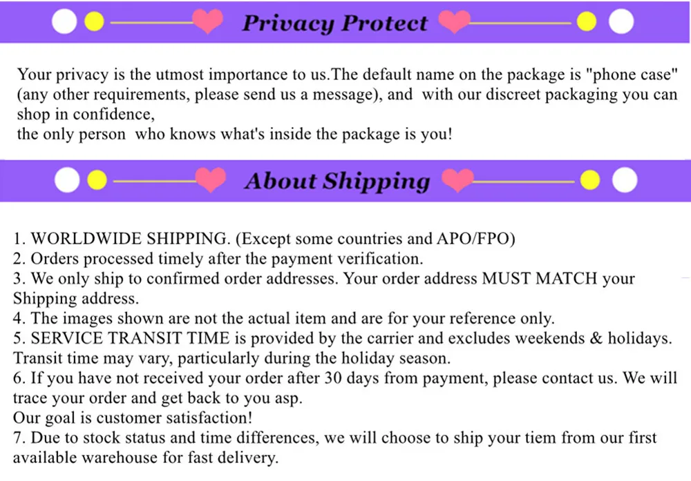 Secret and discreet package,and do not write it about sex toys! If you have any questions,please contact us!