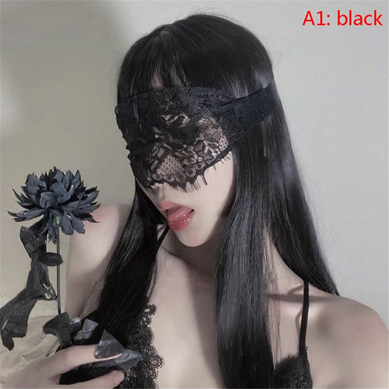 Home Uncategorized Sexy Lace Blindfolds Black White Cutout Patch Blindfolds Exotic Clothing Women Prom Cosplay Costumes Accessories